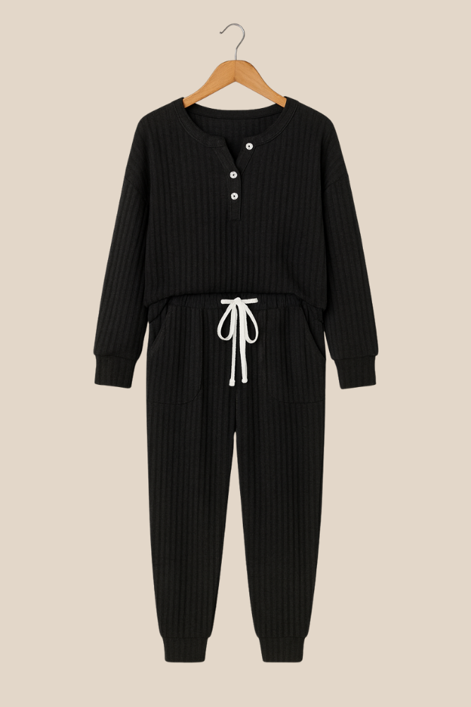 Opplev hverdagskomfort om møter moderne stil. Faye-sett er det ultimate to-delte antrekket for kvinner som vil bevege seg fritt, føle seg avslappet og se sofistikert ut – hjemme, på kafé eller på helgetur. Med pustende materiale, justerbar midje og praktiske sidelommer kombinerer dette settet frihet, funksjon og eleganse i ett.