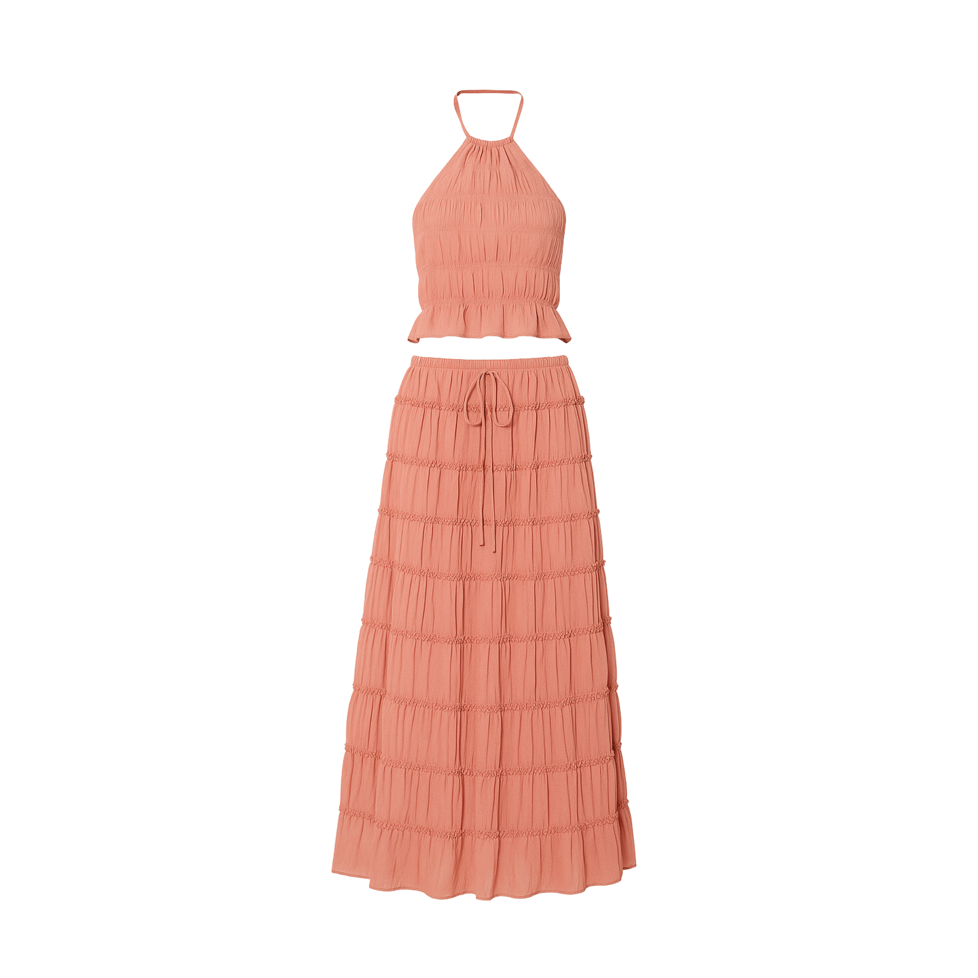 Opplev den perfekte kombinasjonen av lekfull femininitet og tidløs eleganse med Volangset. Dette to-delte settet i en sofistikert beige nyanse er laget for kvinner som ønsker å stråle av selvtillit og stil på varme sommerdager, ferier eller sosiale sammenkomster. De smakfulle volangene gir en grasiøs bevegelse og et feminint uttrykk, mens det lette, luftige stoffet holder deg komfortabel og elegant hele dagen.